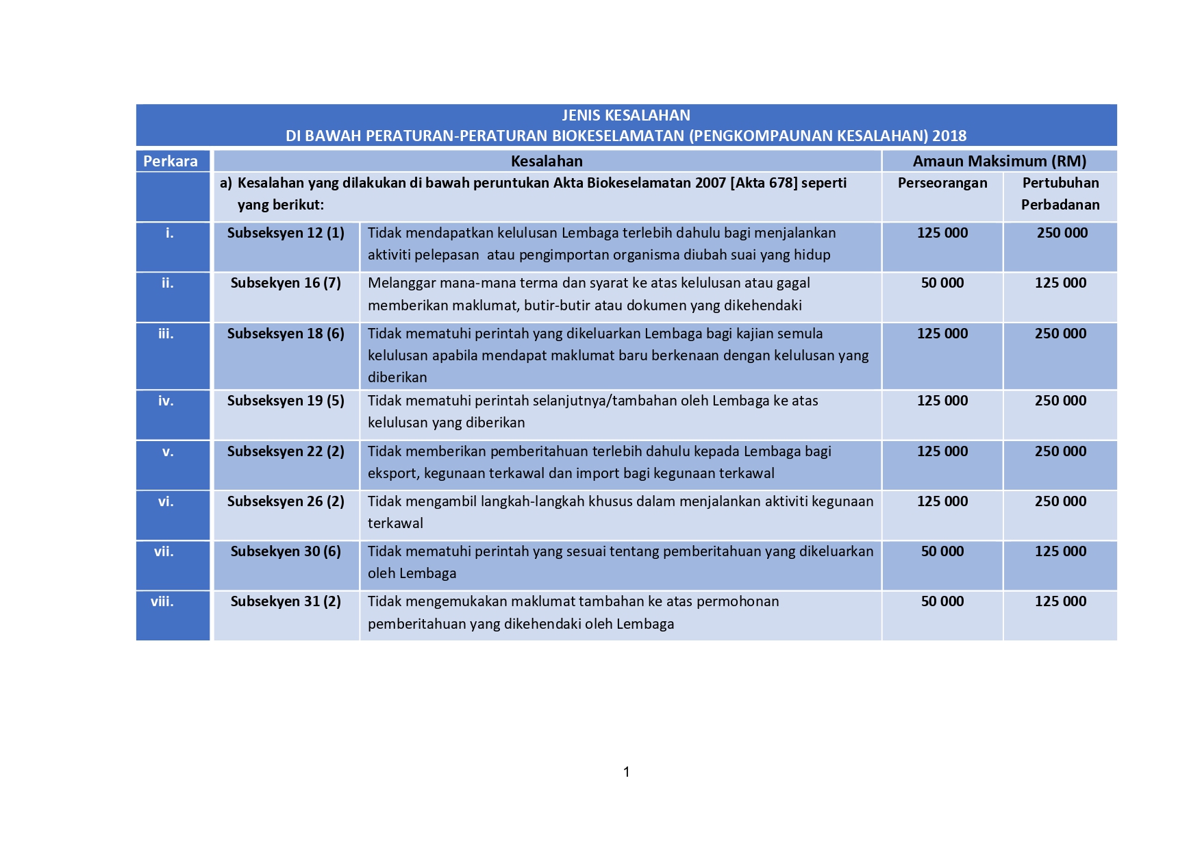 Kesalahan dan Pengkompaunan di bawah Akta Biokeselamatan 2007
